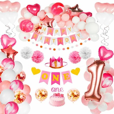 Baby Girl 1st Birthday Balloons Decorations