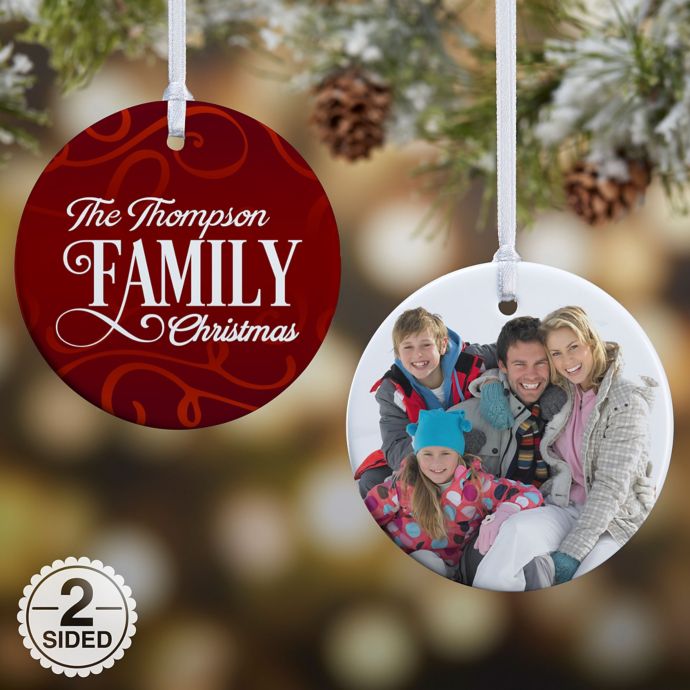 Family Christmas 2 Sided Glossy Photo Christmas Ornament Bed