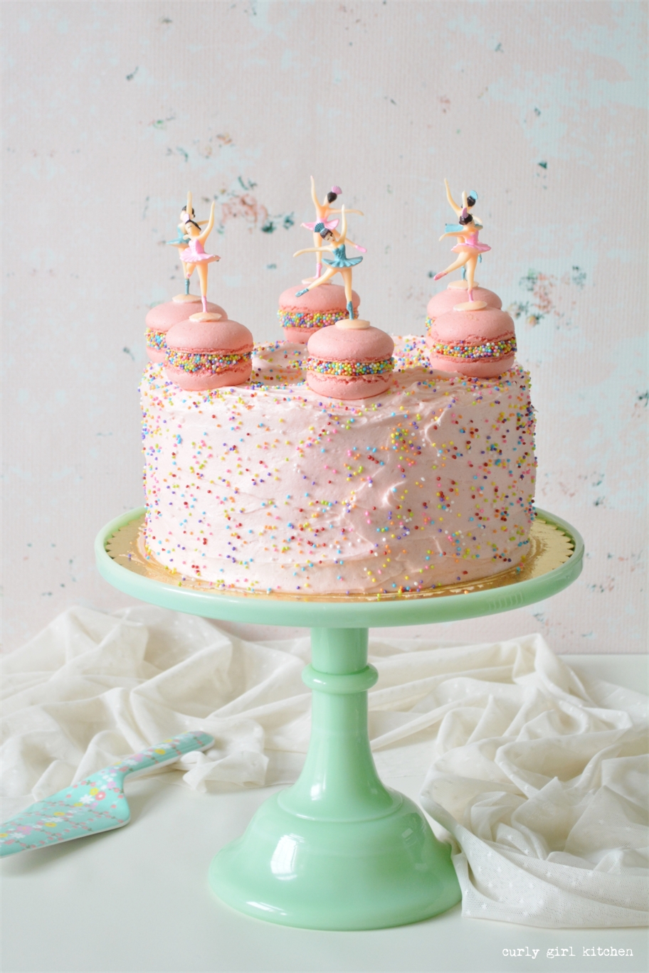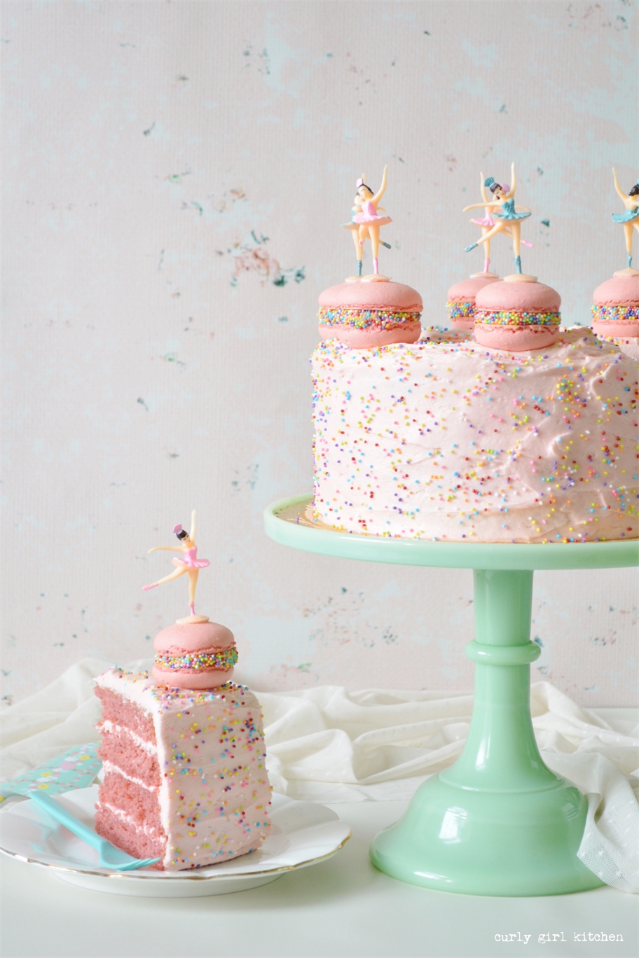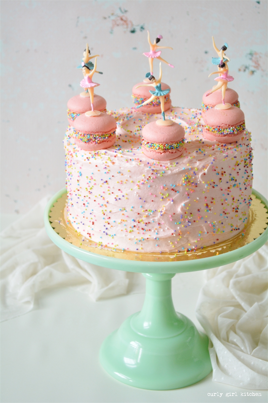 Curly Girl Kitchen Pink Sprinkle Cake With Macarons