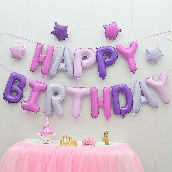 13pc Happy Birthday Letter Foil Balloons Purple Gold Silver Party