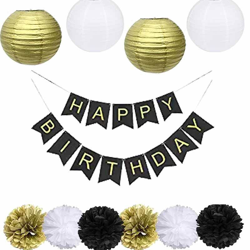 Black Happy Birthday Decorations Party Bunting Banner With Gold