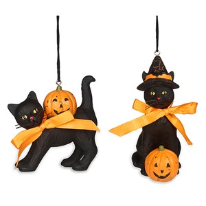 Set 2 Bethany Lowe Witches Black Cat Pumpkin Halloween Ornaments