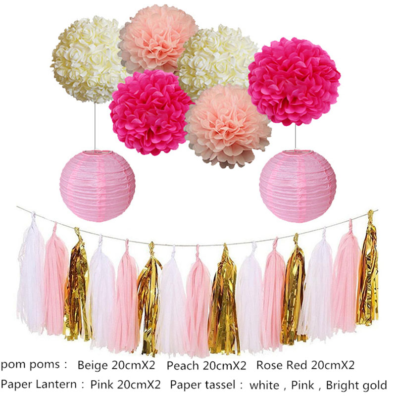 Li Ya Party Decorations 15 Tassels 6 Paper Pom Poms 2 Circle
