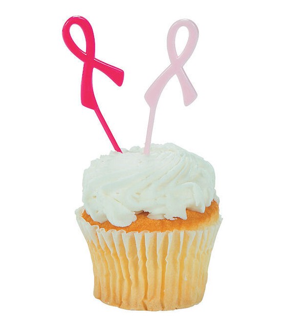 Cheap Pink Ribbon Cupcake Picks Breast Cancer Awareness Wedding
