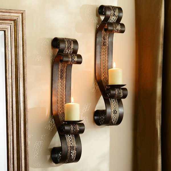 Bronze Flare Scroll Wall Sconce Set Of 2 Candle Holder Wall