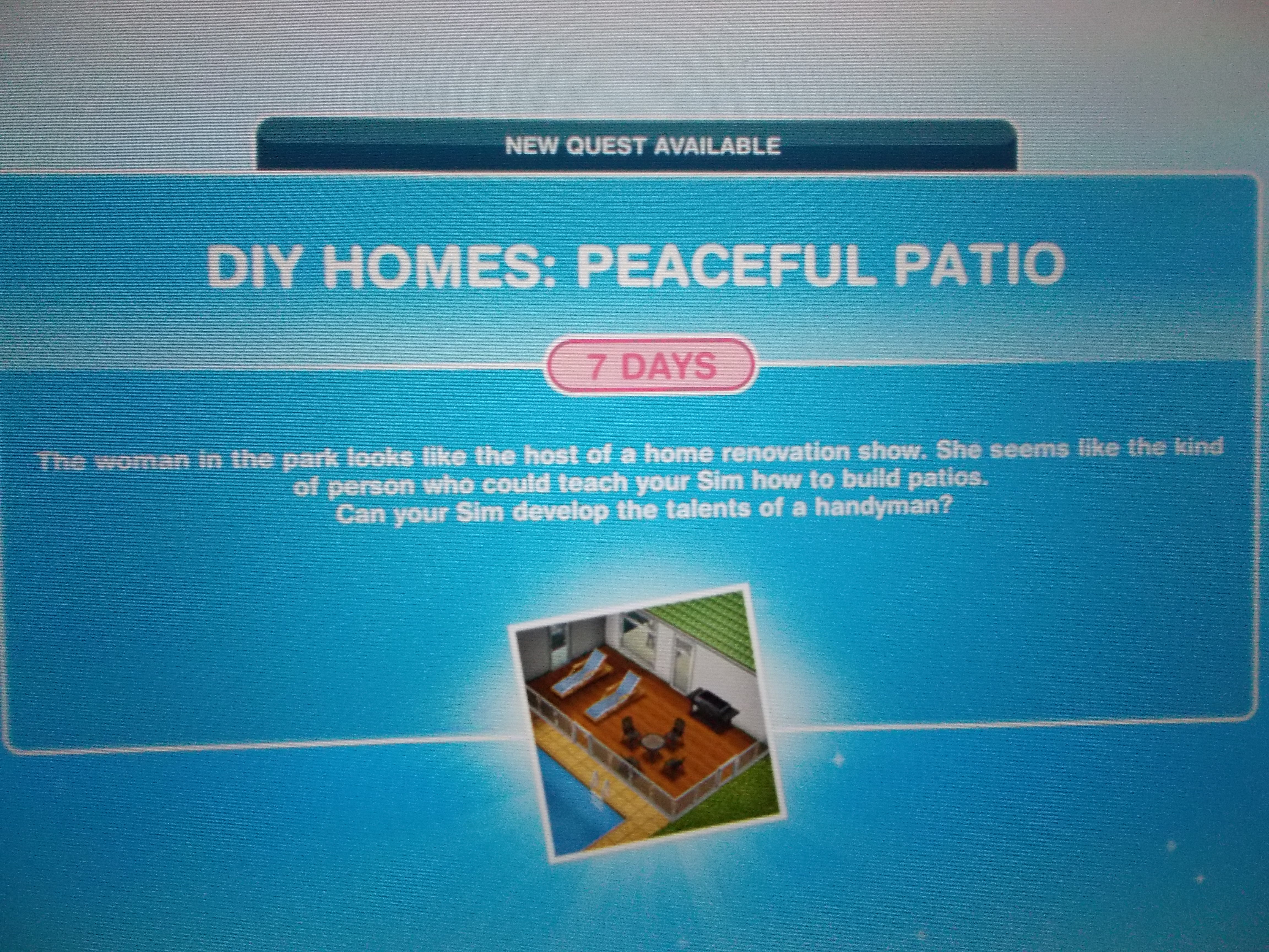 Go home and buy 5000 simoleans or more of outdoor decorations for the garden. Build a patio instant open up the home store tab to do this. In this post you will find a catalogue of all the items to date in the furniture section of buy mode in the sims freeplay the table below includes the title of the item the picture from the store the cost of the item whether it is unlocked by levelling up or in a questevent and how much you would get if you sold the item. Call bre 4 mins 30 secs use any phone for this.