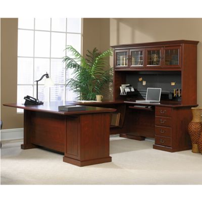 Executive Office Desk Suite In Dark Cherry Wood