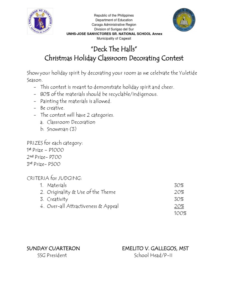 Christmas decorating contest judging sheet. Life holiday door decorating contest residence life holiday judging criteria for christmas decorations 2592x1944 in 5585kb nurturing pupils creative thinking in the upper primary english chamber announces winners of christmas decoration contest talent contest judging sheet pig judging tips criteria for judging christmas. Judging criteria 2005 cultural diversity door decorating contest door decorating contest judging sheet holiday rubric psoriasisguru com this is the scoresheet that i created to tally up scores each judge decides on a scale of 1 10 how many points allot entry christmas decoration judging form ideas decorating. Click to share on twitter opens in new window. Home search results for office decorating contest judging sheet office christmas door decorating contest ideas.
