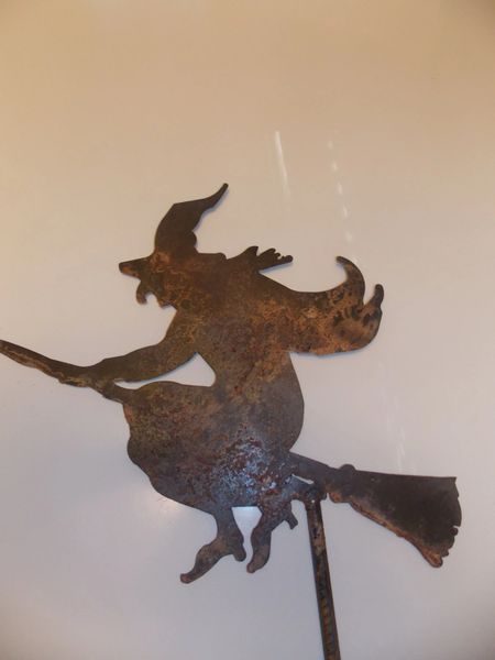 Halloween Moon And Witch Decorations With A Vintage Light Fixture