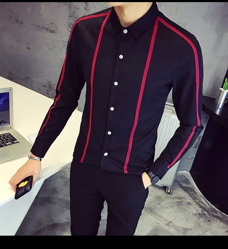 Metrosexual Men S Letter Applique Long Sleeve Stripe Ribbon