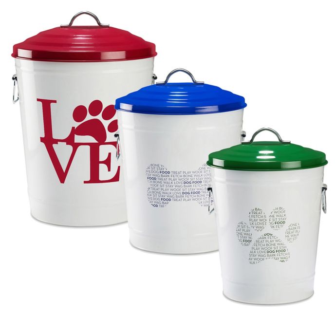Nu steel metal ribbed ivory 3 pc set jumbo pet canister with golden paw plaque dog food treat storage container jar with wooden lid with sturdy bone handle tight fitting lids for dog biscuit cookies. Nu steel metal ribbed ivory 3 pc set jumbo pet canister with golden paw plaque dog food treat storage container jar with wooden lid with sturdy bone handle tight fitting lids for dog biscuit cookies. Iconic pet rattan indooroutdoor pet crate with storage the hand woven sturdy pliable palm stems of the rattan pet crate by iconic pet give an elegant and exotic look to a traditional crate. Petco offers a wide selection of dog food storage from containers to canisters and everything in between.