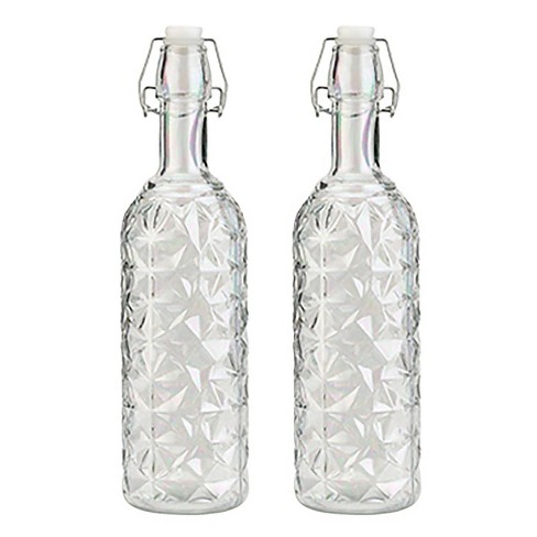 Clip Lid Square Clear Large Glass Water Bottle With Painting