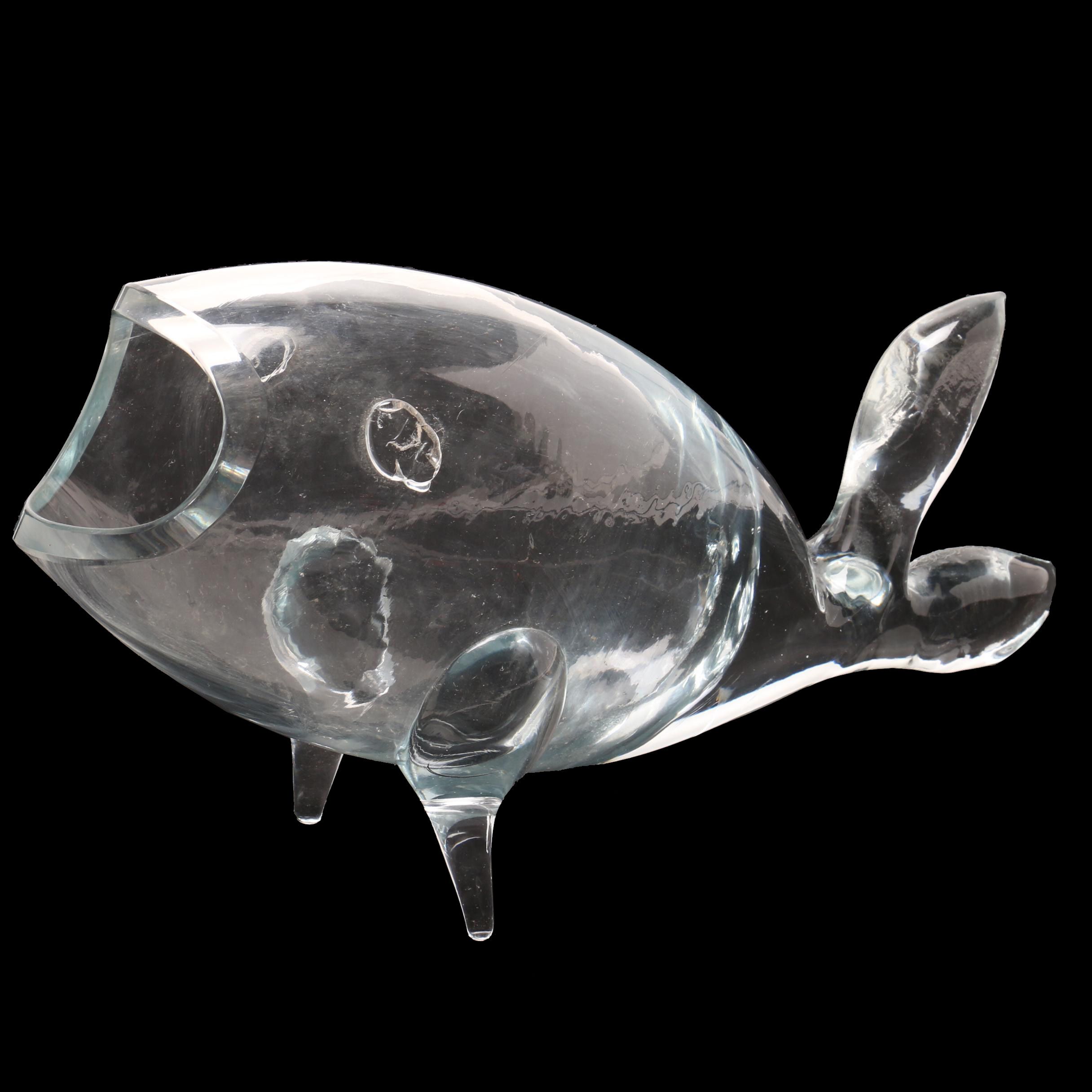 Vintage Swedish Art Glass Clear Vase W Fish Bubbles Decoration