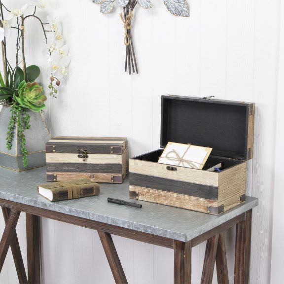 Vintage Mirrored Wooden Shadow Box W Metal Decorative Accents