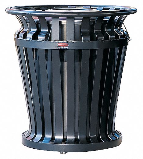 City Garbage Can Outdoor Metal Slatted Waste Receptacle Town
