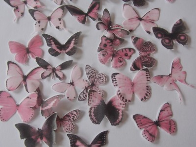 30 Pink Ombre Wafer Paper Butterflies For Cake Decorating And