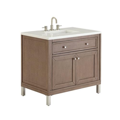 Chicago 36 In White Washed Walnut Vanity With Arctic Fall Quartz