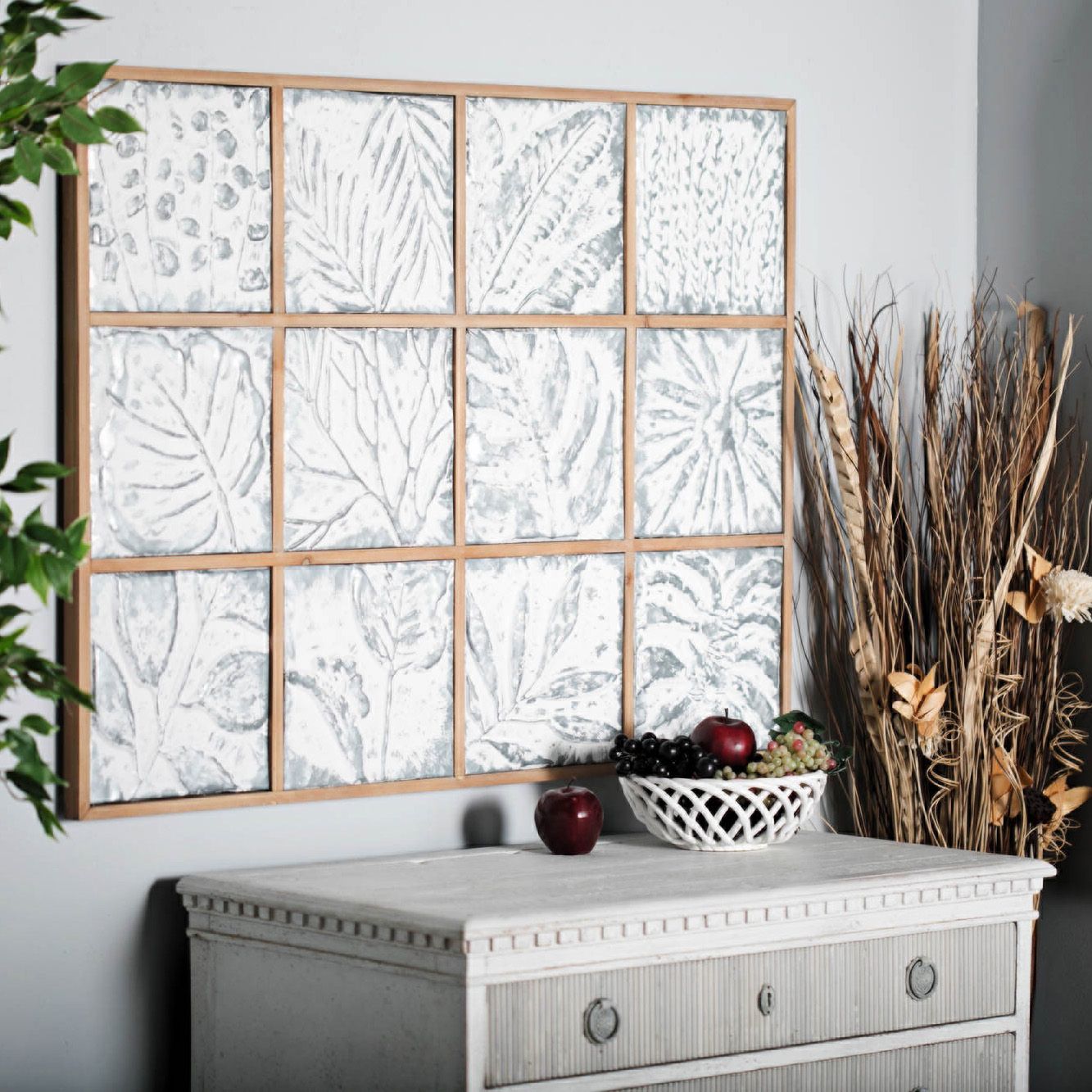 Litton Lane Rectangular Framed Metal Whitewashed Gold Leaves Wall