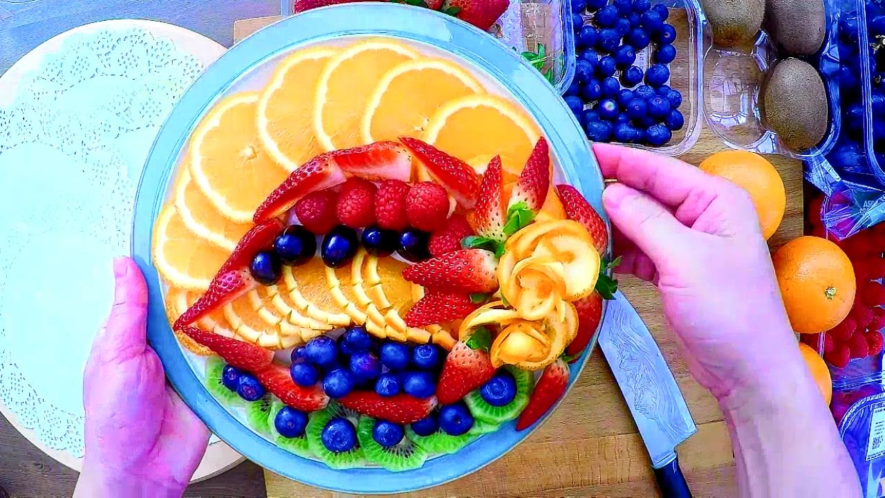 We made this one super festive by using red green and yellow fruit. This adorable halloween themed fruit platter is fun and is super easy to put together. 20 fruit plate decoration fruit vegetable carving garnish cutting tricks duration. Easy to make snacks healthy meals for kids kids meals veggie platters veggie tray rainbow fruit kids rainbow rainbow theme rainbow colors fruit and veggie tray for st patrick day.