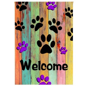 Welcome Colorful Dog Paws Garden Flag 12x18 House Yard Banner
