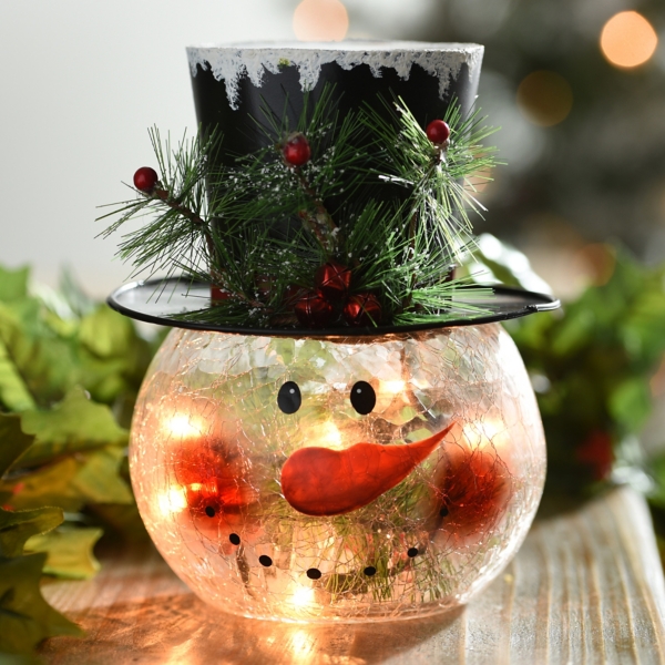Holiday Electric Lighted Metal Frosted Glass Snowman Head