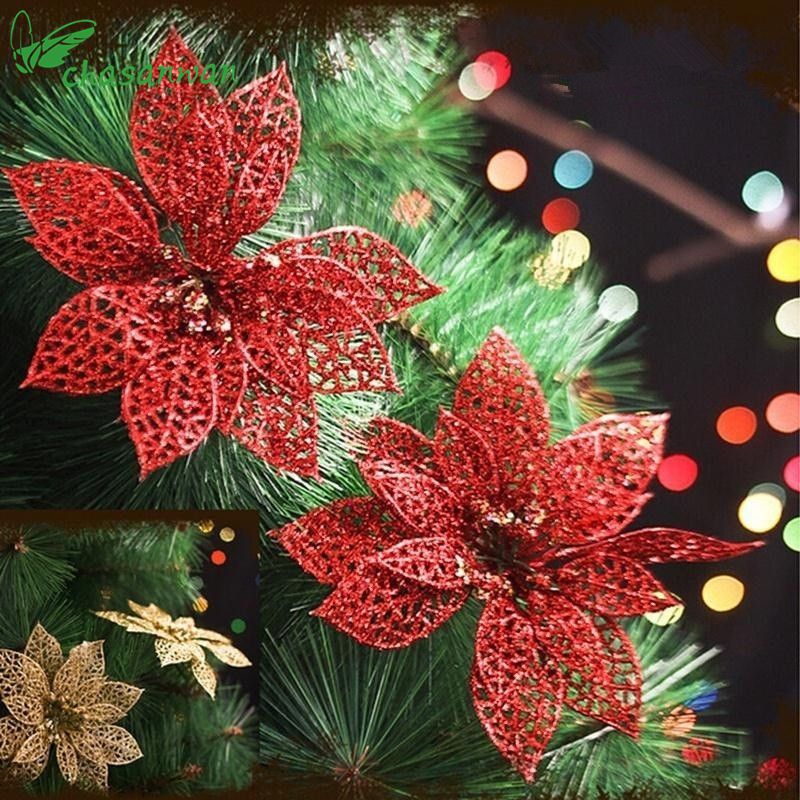 Selection Of Gold And Red Glitter Christmas Tree Decoration