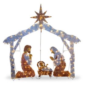Amazon Com Glittering Tinsel Nativity Christmas Decor Outdoor Holidays Decorations Home Kitchen