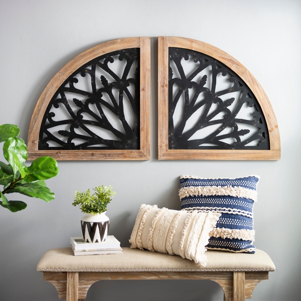 Distressed Wood Half Moon Cut Out Architectural Wall Decor