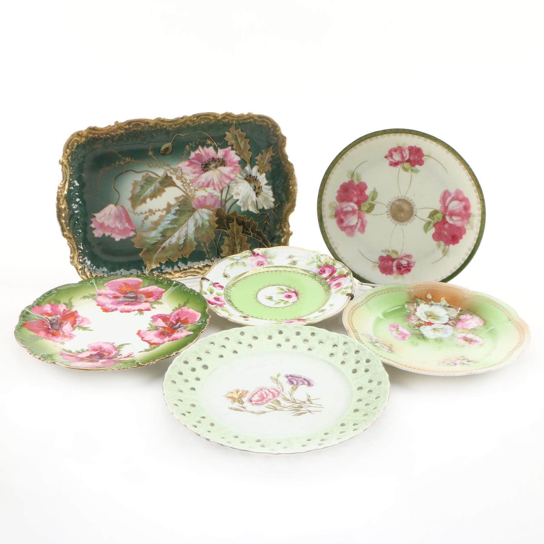 Antique Hand Painted Porcelain Plates With Fruit And Other