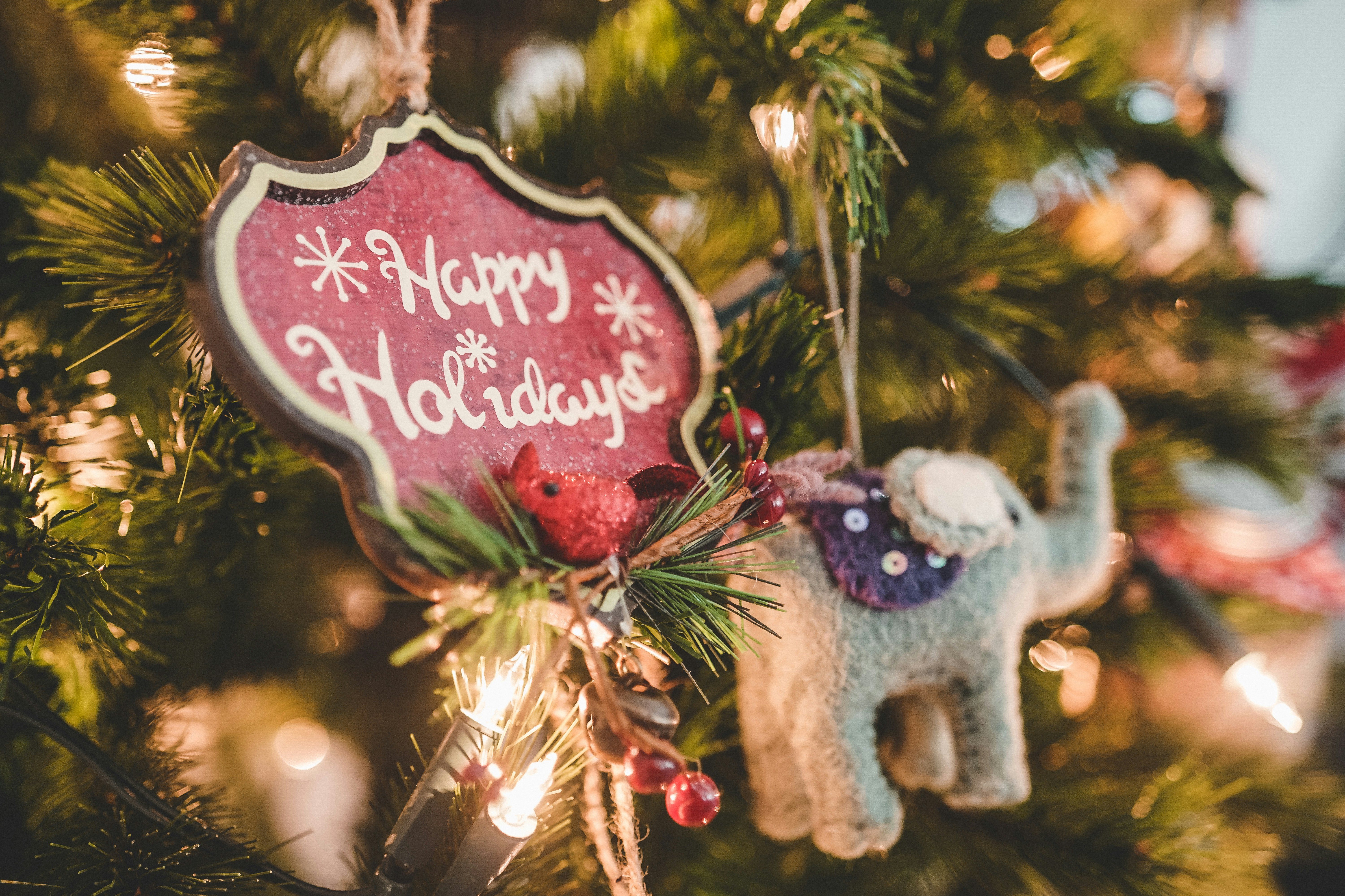 Grey Elephant Christmas Ornament Hang On Lighted Christmas Tree