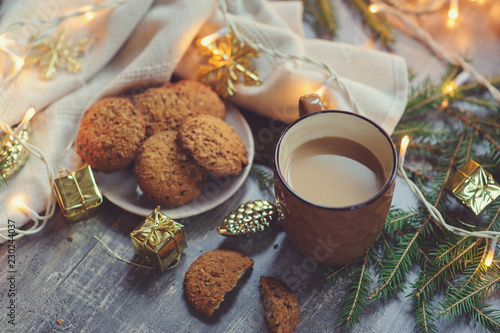 Homemade Honey Cake Winter Composition New Year Photo Christmas