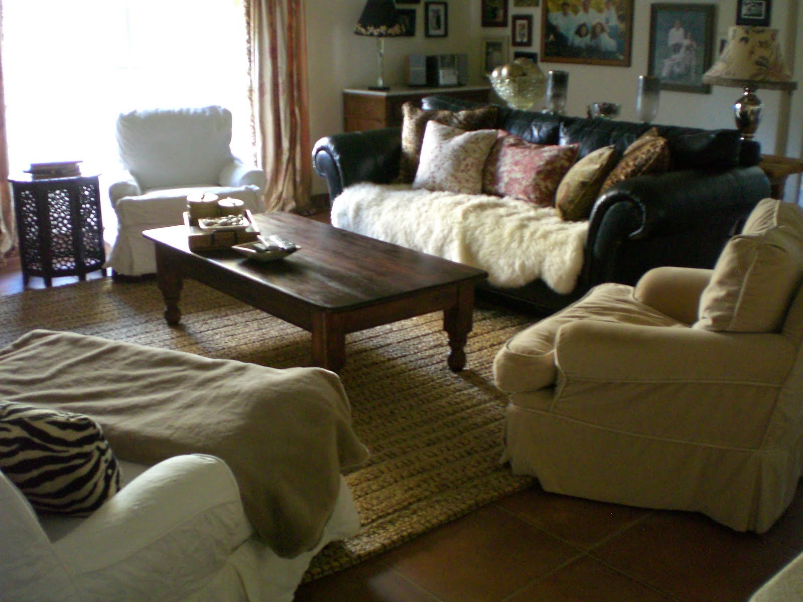 Leather Couch With Decoration Pillows And Throw Stock Photo