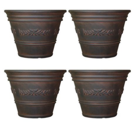 Laurel Round Polyresin Indoor Outdoor Flower Planter Pots In Rust
