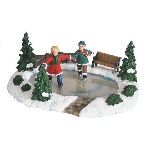 Christmas Village Mickey And Minnie Ice Skating On A Frozen Pond W