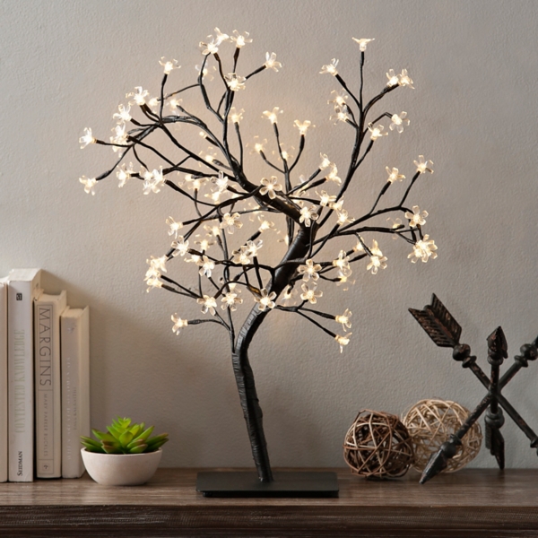 Also try putting some decorative branches on end table or in a corner. For indoor use only. Get your indoor oasis on right now and year round. 20 bulbs warm white led 315 tall bendable branches 48 hours of life per battery set takes 3 aa batteries not included.