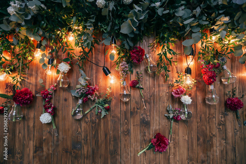 Rustic Wedding Decorations With Flowers And Light Bulbs Banquet