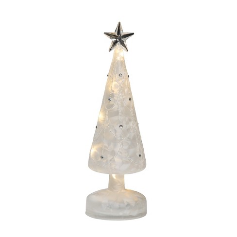Trans Pac Glass White Christmas Frosted Light Up Tree Decor