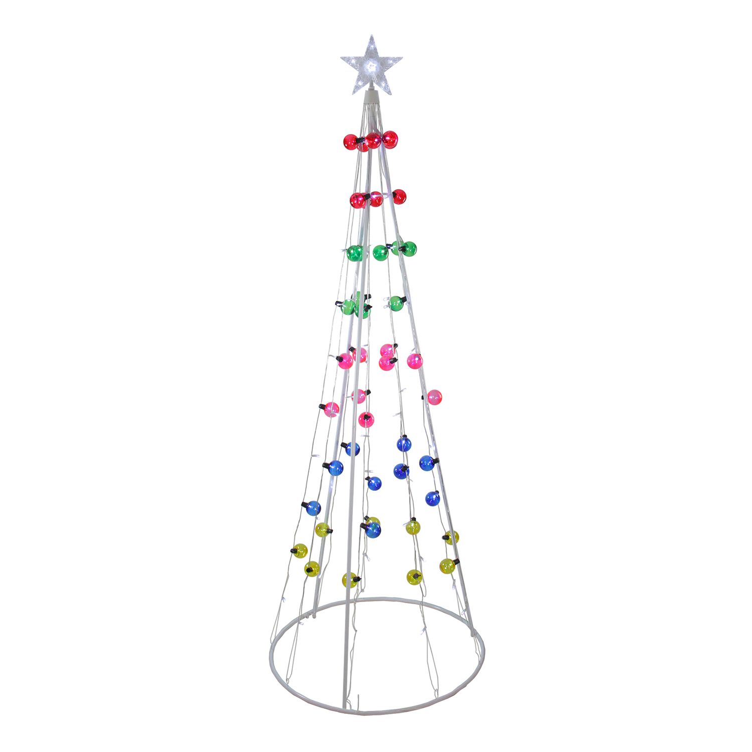 Colored Lighted Christmas Tree With Blue Ornaments Outdoor Night