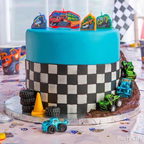 Save time and money with pre packaged party kits. Cut two hidden pillars to 4 in. Cover pillars with icing building up to blend with rugged terrain. This kit is great for the monster truck lovers.