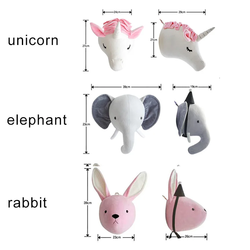 Baby Nursery 3d Animal Head Wall Mount Kawaii Stuffed Elephant