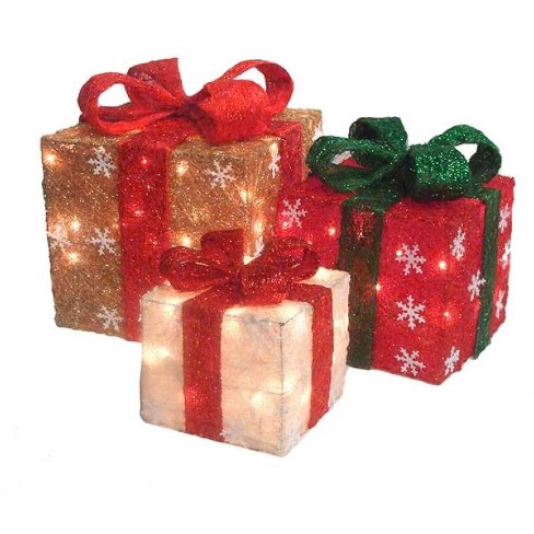 Northlight Set Of 3 Red And Green Gift Box Lighted Christmas