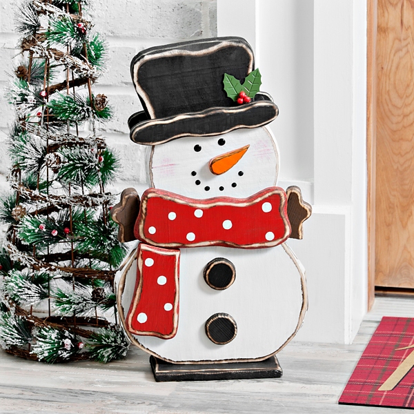 Wooden Snowman Statue Figure Christmas Decoration Indoor Outdoor