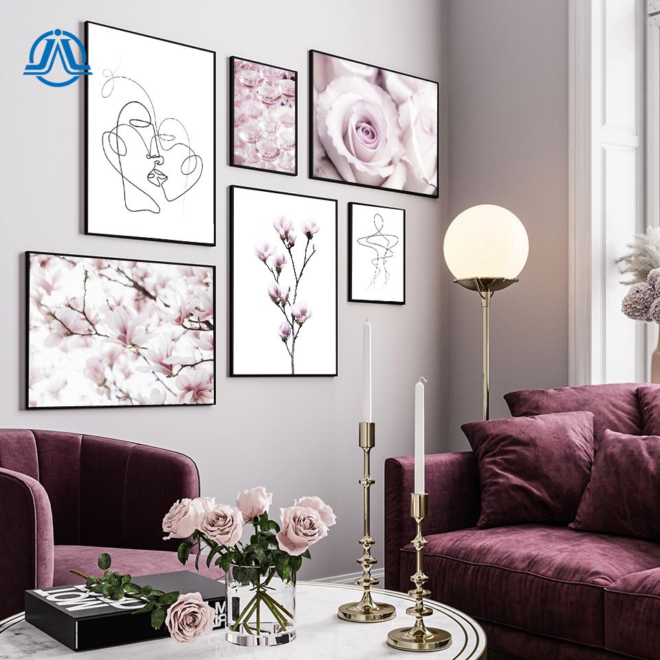 Yellow Gray Coral Pink Floral Wall Art Yellow Gray Coral Wall