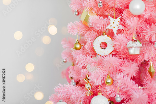 Christmas Tree With Pink And Gold Ornaments Stock Photo Alamy