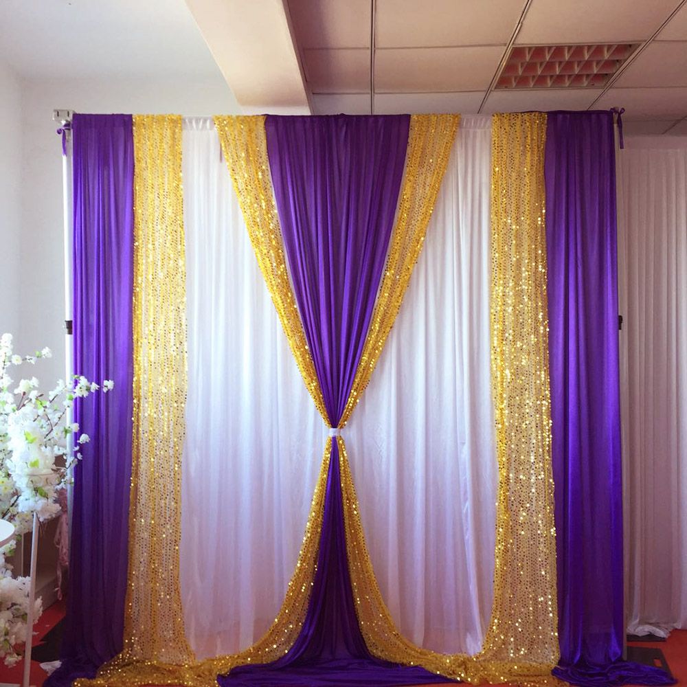 Hot Sale White Wedding Backdrop Gold Purple Mixed Swag Drapes For