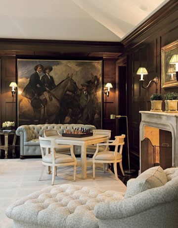Ralph Lauren Equestrian Style Wood Paneled Library Books Shelves