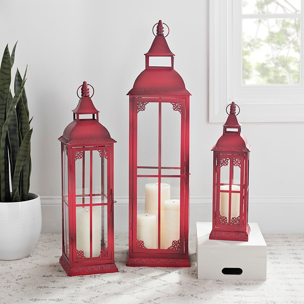 Lanterns Set Of 2 Red Transitional Candleholders By