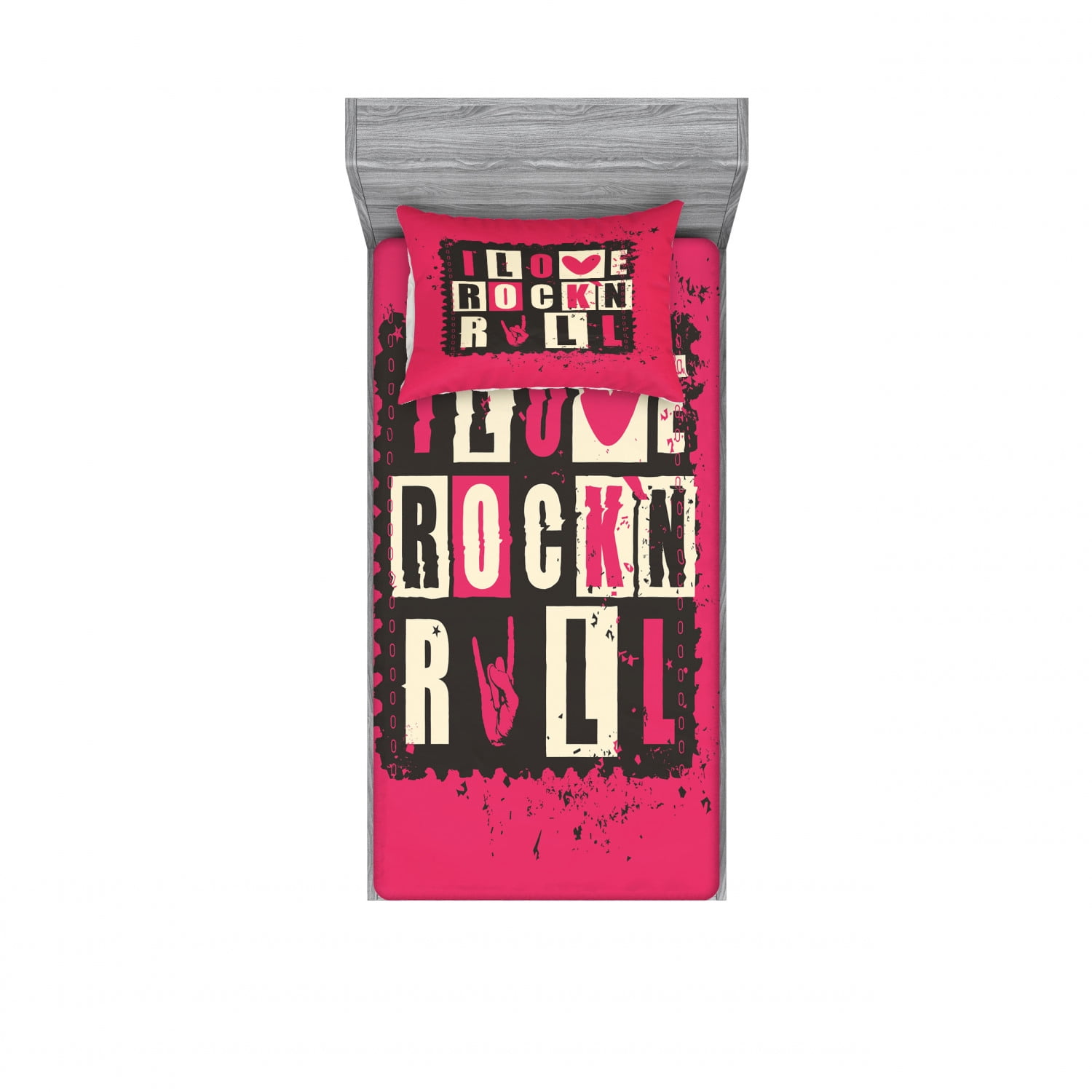 Retro Bedding Set With Sheet Covers Vintage Letters I Love Rock