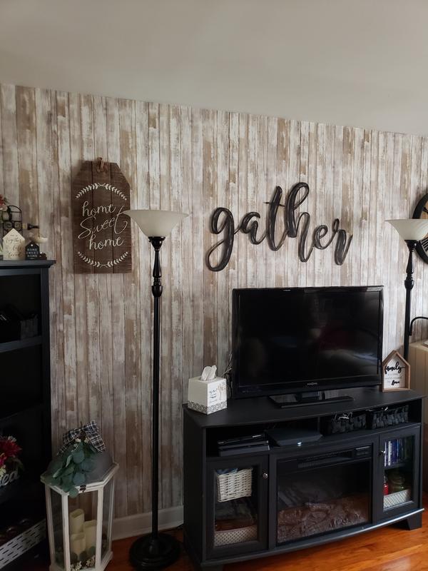 Roommates by york rmk9050wp distressed wood peel and stick wall decor. Offering a fun and fresh way to decorate peel and stick wallpaper is printed on high quality vinyl that is repositionable and removable making it a go to budget friendly choice for both temporary and permanent projects. Whether youre decorating an entire room accenting a small area or rejuvenating old furniture achieve your desired look in minutes with our fast and easy installation process. 205 inches x 165 feet 2818 square feet transform a wall like never before with distressed wood peel and stick wallpaper.