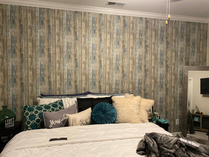 Roommates rmk9050wp distressed wood peel and stick wall decor. Enhance your space with blue distressed wood peel and stick wallpaper by roommates. Distressed wood peel and stick wallpaper description beautiful wood planks come alive with roommates decor revolutionary peel and stick wallpaper decor. Inspired by the look of real rustic wood renovate walls in just a few hours or less with this authentic design. Give walls an instant transformation with this revolutionary distressed wood peel and stick wall decor by roommates.